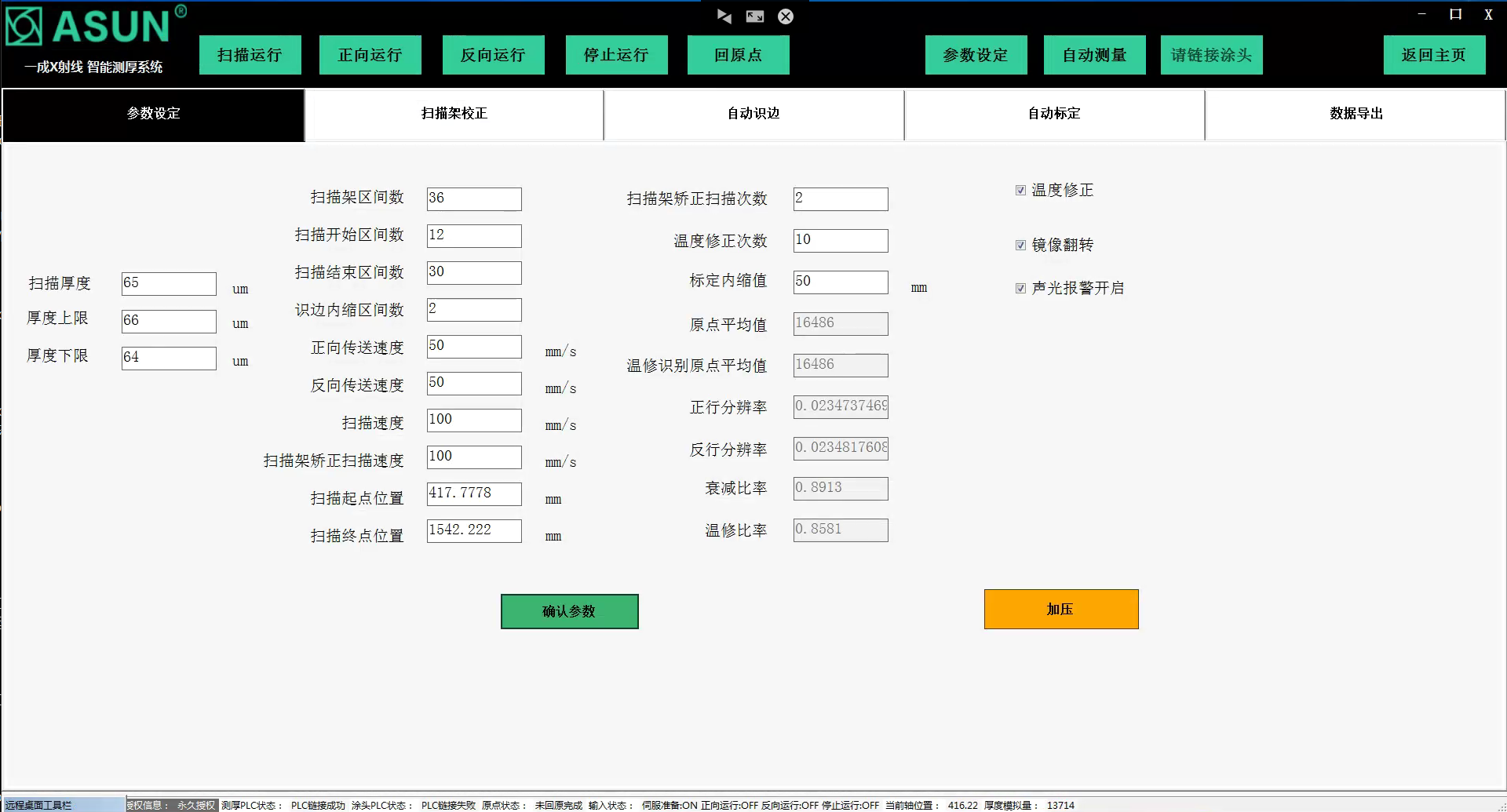 一成X射線智能測厚儀可實現(xiàn)自動標定,支持產(chǎn)線不間斷運行狀態(tài)下快速完成校準,通過自適應(yīng)校準算法與實時數(shù)據(jù)閉環(huán)反饋,標定過程全自動執(zhí)行,無需人工干預(yù)。